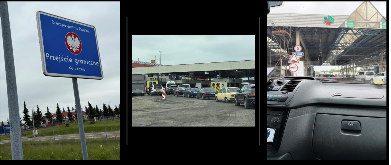Mission 13 convoy approaching the Polish Ukrainian border. Through Belgium, Germany, and Poland, the ambulances and evacuation vehicles cross the border into Ukraine on May 22 to begin their mission to help transport and heal the wounded. |